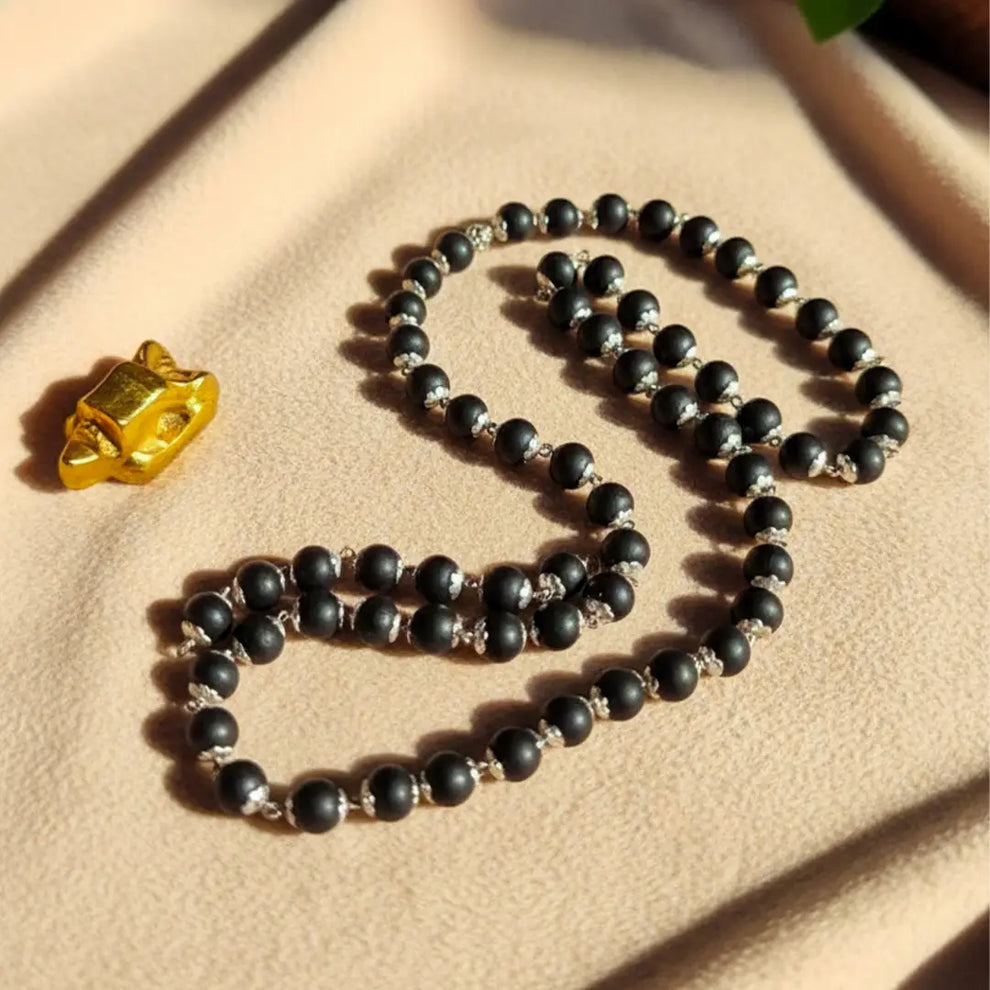 Handcrafted from authentic Karungali beads, this mala carries a natural, earthy charm that reflects tradition and simplicity. Known for its grounding properties, Karungali is traditionally believed to promote inner peace, strengthen intuition, and encourage a deeper connection with nature.